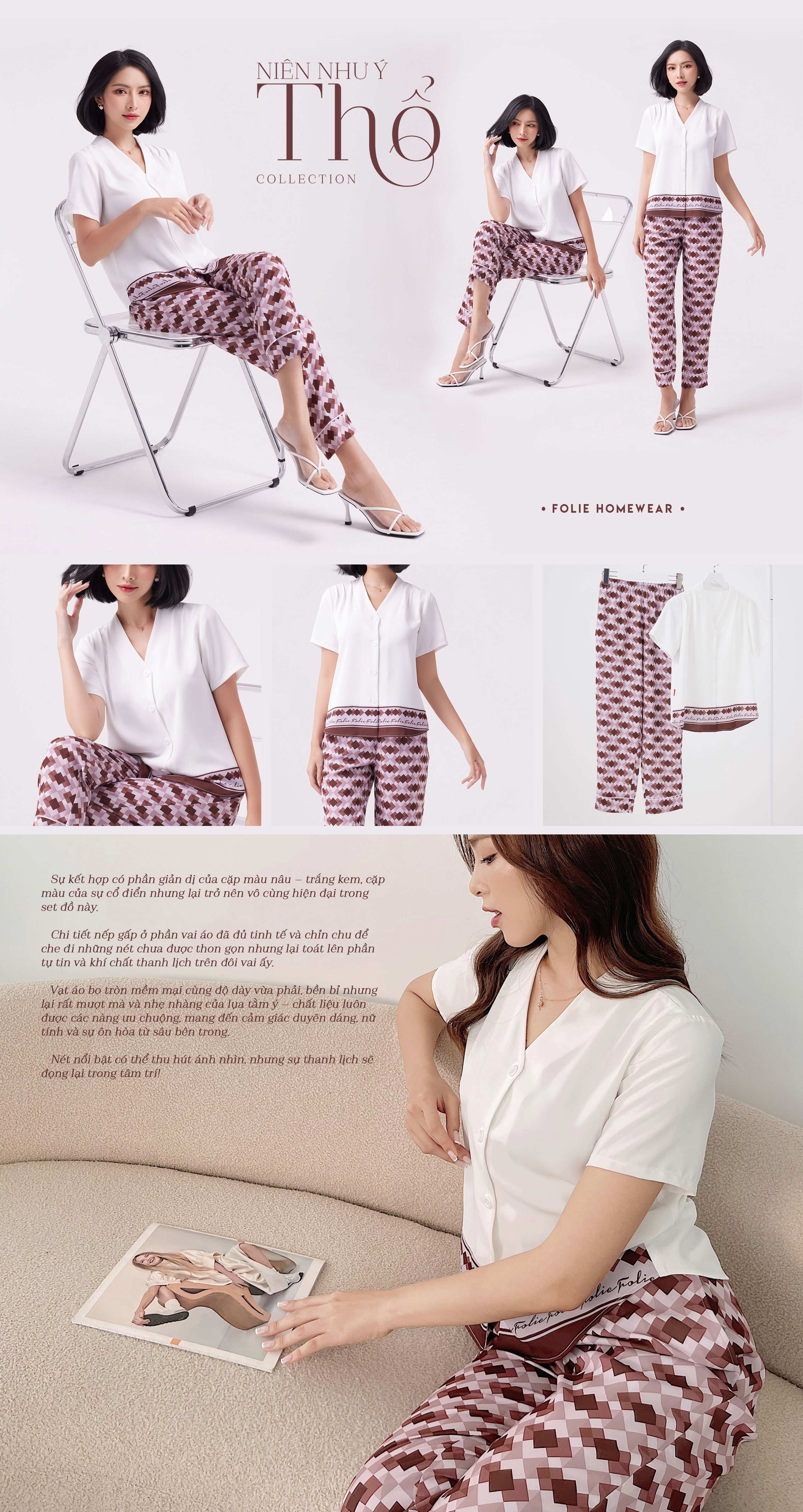 Sự kết hợp có phần giản dị của cặp màu nâu – trắng kem, cặp màu của sự cổ điển nhưng lại trở nên vô cùng hiện đại trong set đồ này.