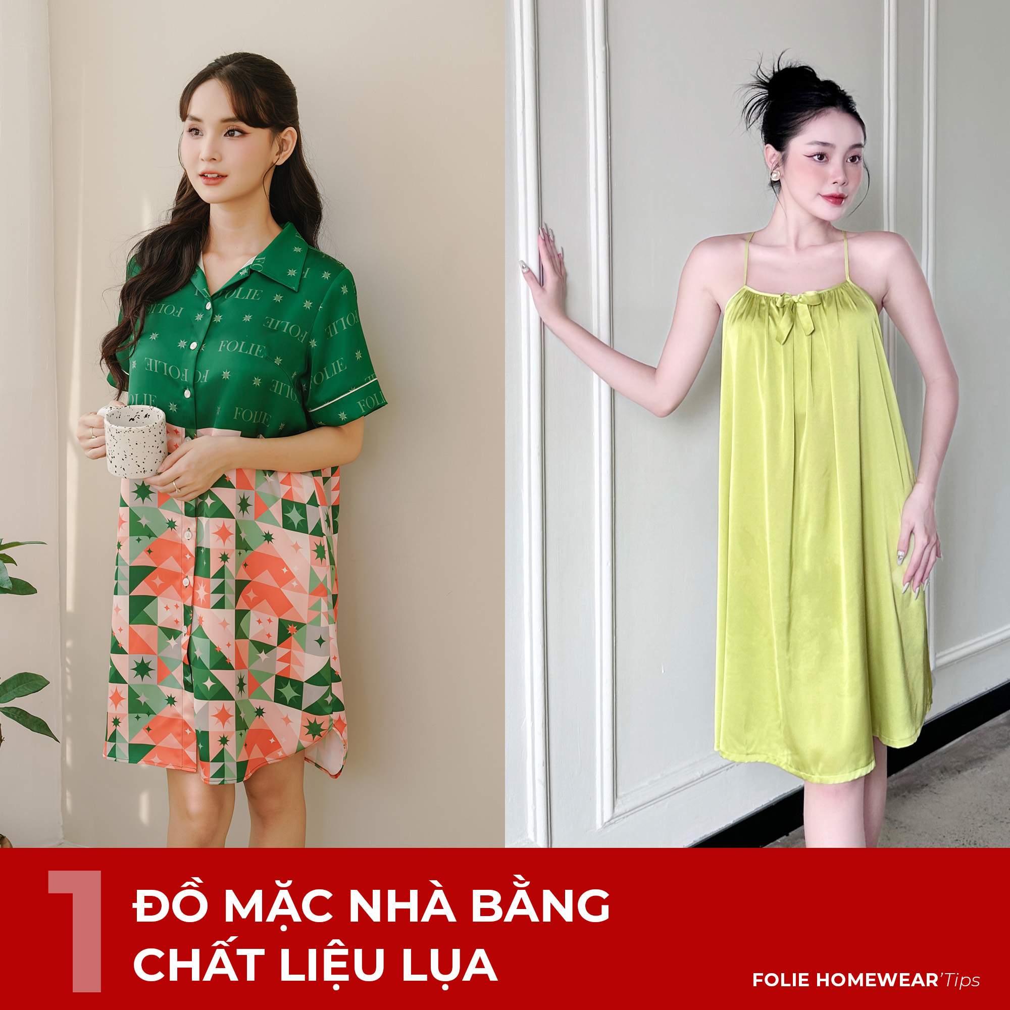 Với chất liệu vừa đảm bảo sự thanh lịch, lại mang đến cảm giác mát mẻ thì những set đồ lụa sẽ là lựa chọn lý tưởng nhất, đầm lụa hay pyjama đơn giản đều giúp nàng ghi điểm sang trọng, phóng khoáng. Từng điểm chạm của vải lụa lên da đều nhẹ nhàng và thướt tha mang đến cảm giác mát rượi, làn da như được cưng chiều tuyệt đối đánh bay cái nóng oi bức mùa Hè.