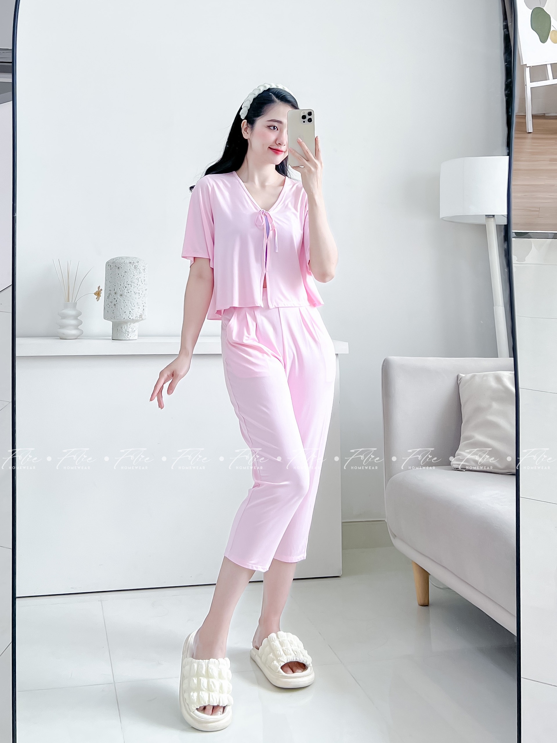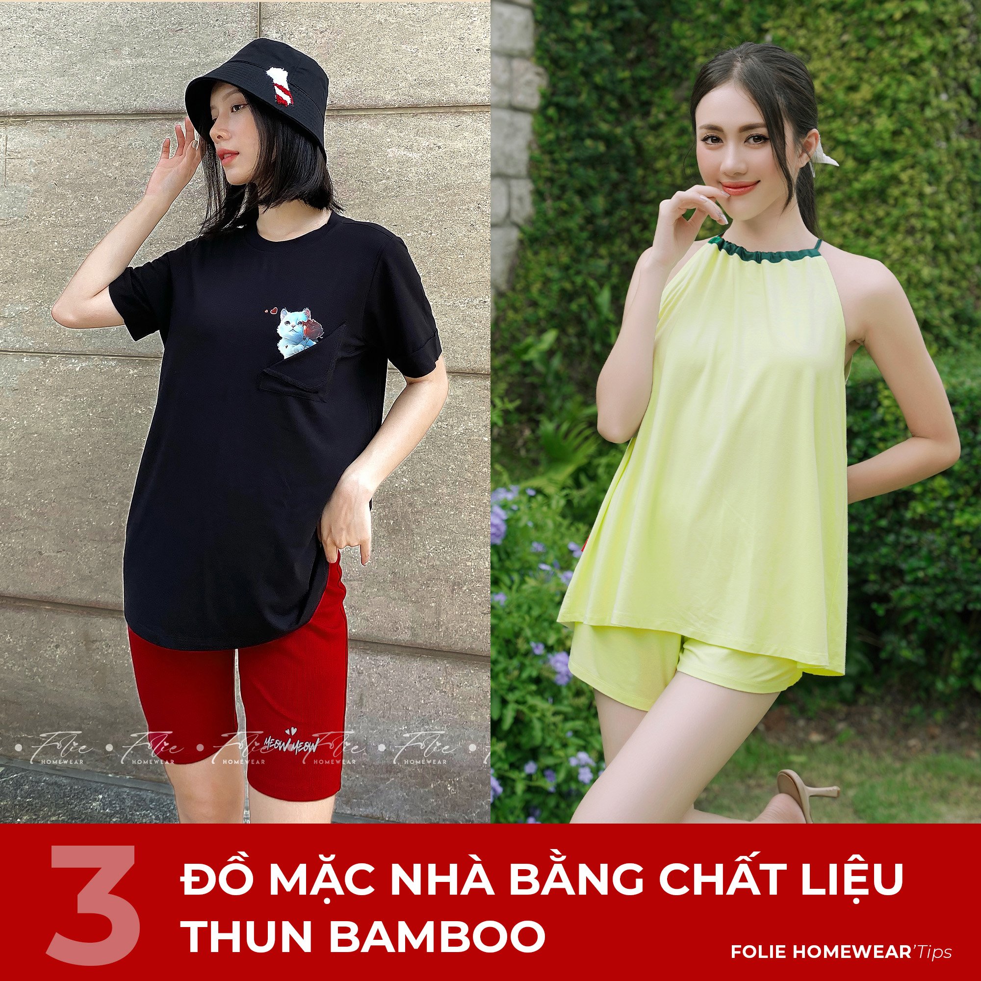 Bằng chất liệu hoàn toàn tự nhiên và lành tính, vải thun tre chiếm trọn sự yêu thích của các nàng đặc biệt là những nàng có làn da nhạy cảm. Bên cạnh sự mỏng nhẹ, mát rượi trên từng thớ vải, thun tre còn có khả năng kháng khuẩn, khử mùi và chống nắng hiệu quả nên nàng có thể yên tâm mà xúng xính các outfit mặc nhà bằng vải thun tre trong những ngày nắng nóng gay gắt.