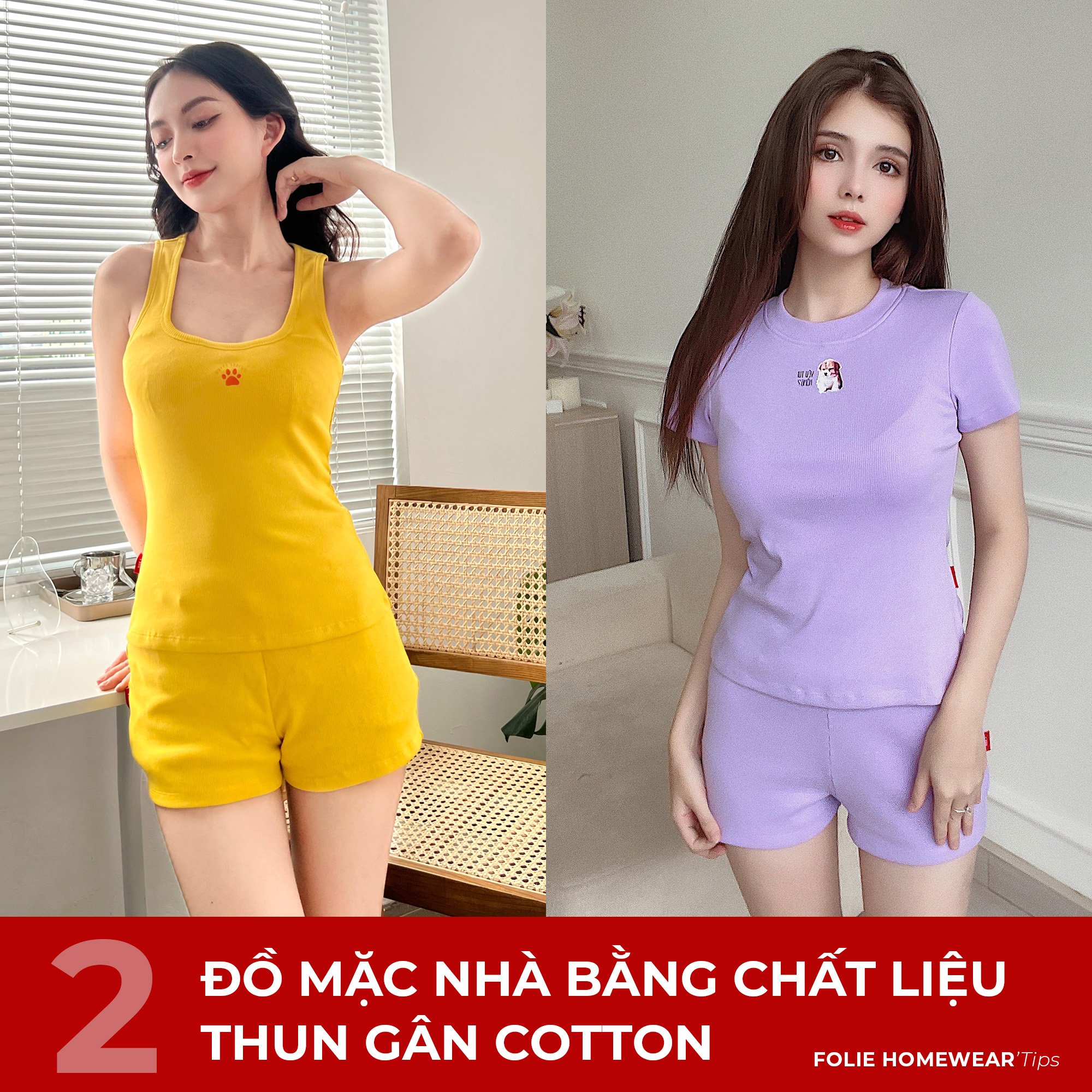 Nếu Hè đến cùng những cái nắng oi ả thì các set đồ vải thun gân cotton nhà Folie lại là đối thủ xóa tan bầu không khí nóng nực này bằng khả năng thấm hút mồ hôi, giải nhiệt tốt, đặc biệt là độ co giãn của chất liệu thun sẽ giúp nàng thoải mái hoạt động cả ngày nữa đấy.