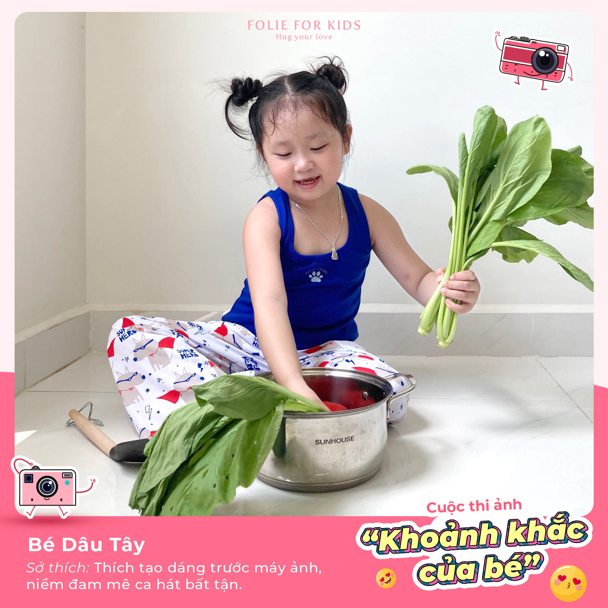 Bước 1: Ba mẹ chụp lại khoảnh khắc đáng yêu, thú vị của bé khi diện "đồ mặc nhà Folie For Kids"