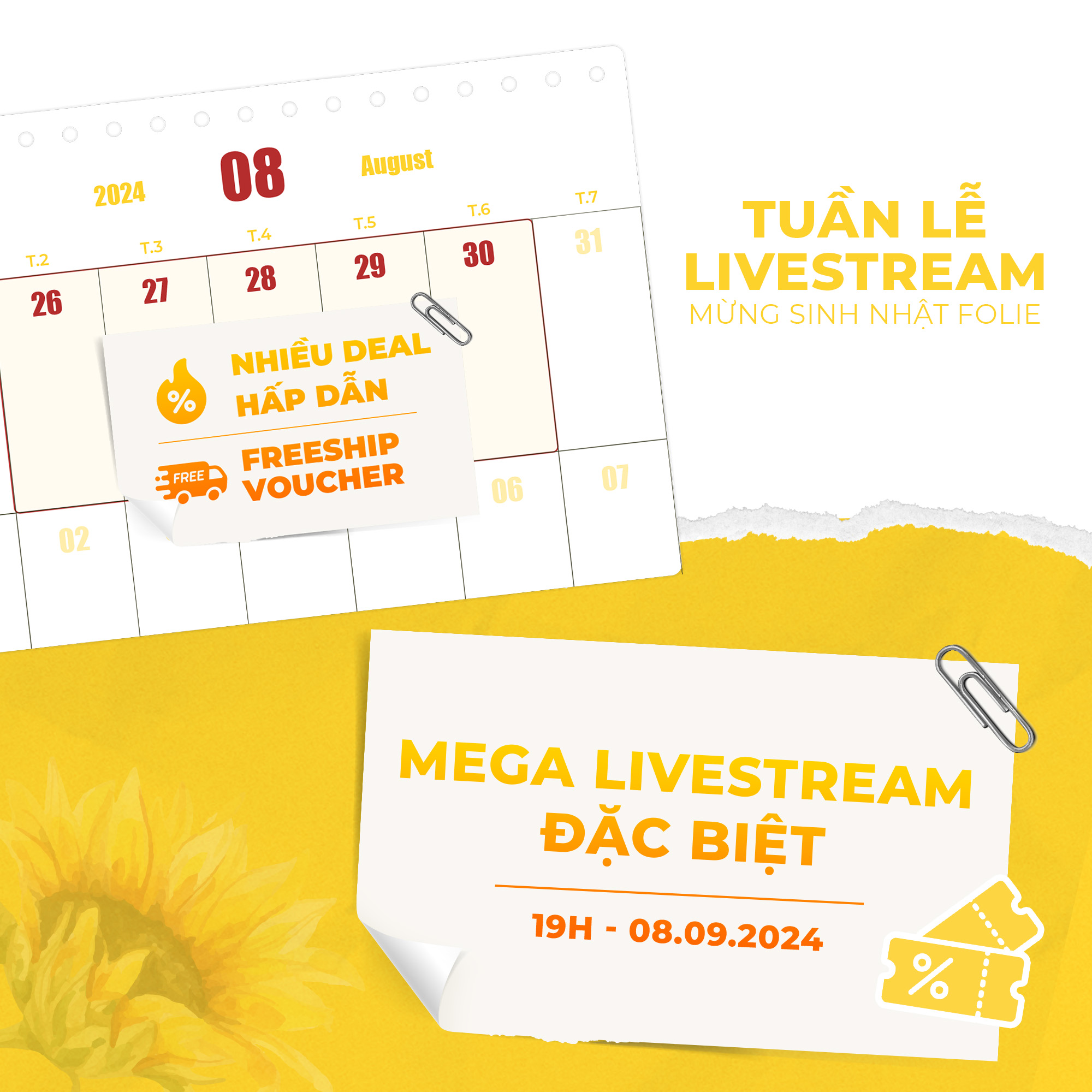 Tuần lễ Livestream mừng sinh nhật Folie 9 tuổi Rộn ràng mùa đại tiệc, Folie mang deal gần nàng hơn với tuần lễ Livestream đặc biệt, xuyên suốt 1 tuần với nhiều Deal hấp dẫn, Voucher Freeship ngập tràn. Lưu lại lịch để không bỏ lỡ đại tiệc mua sắm bùng nổ nàng nhé!