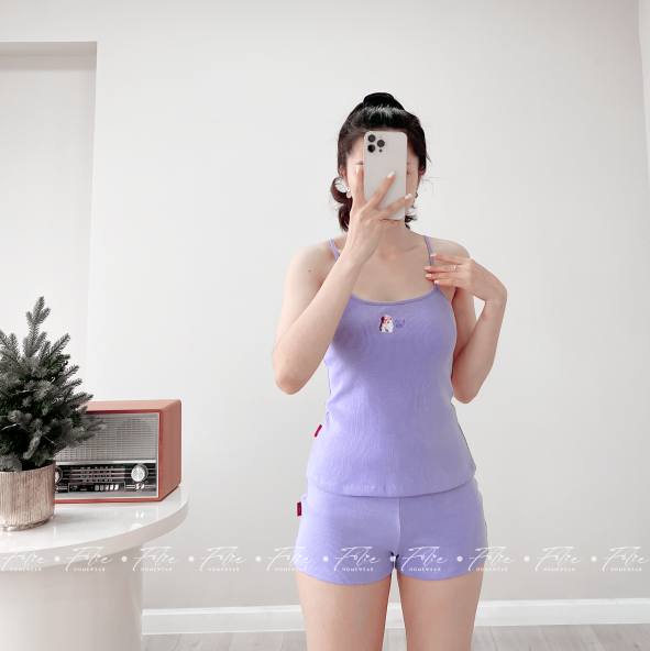 Set áo 2 dây mặc nhà gợi cảm phối cùng quần short chất liệu thun gân cotton khéo léo tôn đường cong và đôi chân thon dài
