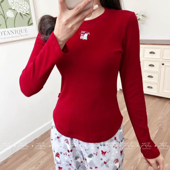Chiếc áo dài tay thun gân cotton thoáng nhẹ nhưng cũng đủ để mang ấm áp, nhẹ nhàng tôn lên nét yêu kiều mà vô cùng duyên dáng cho nàng trong những ngày trời trở gió.