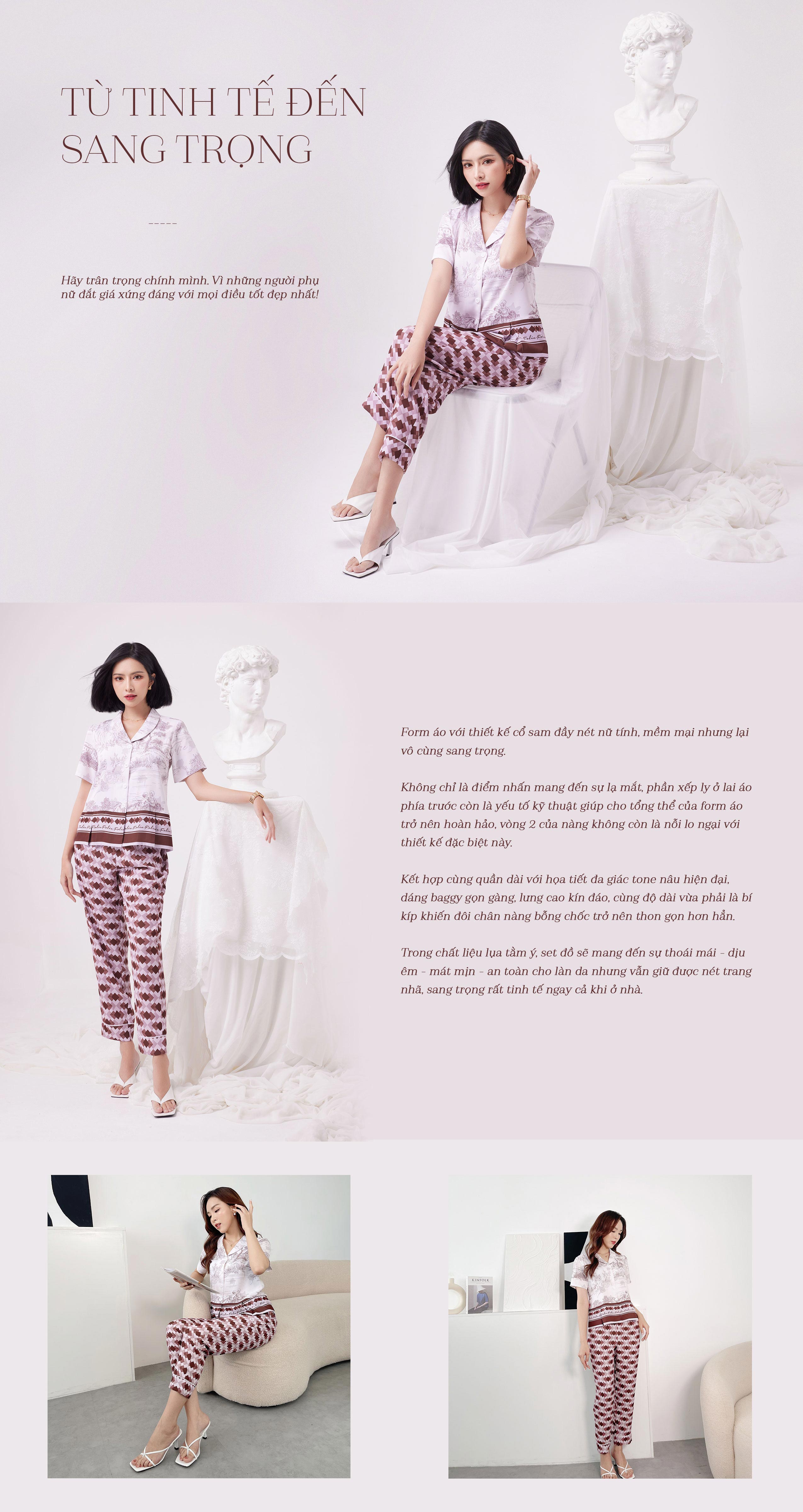 Trong chất liệu lụa tằm ý, set đồ sẽ mang đến sự thoái mái - dịu êm - mát mịn - an toàn cho làn da nhưng vẫn giữ được nét trang nhã, sang trọng rất tinh tế ngay cả khi ở nhà.