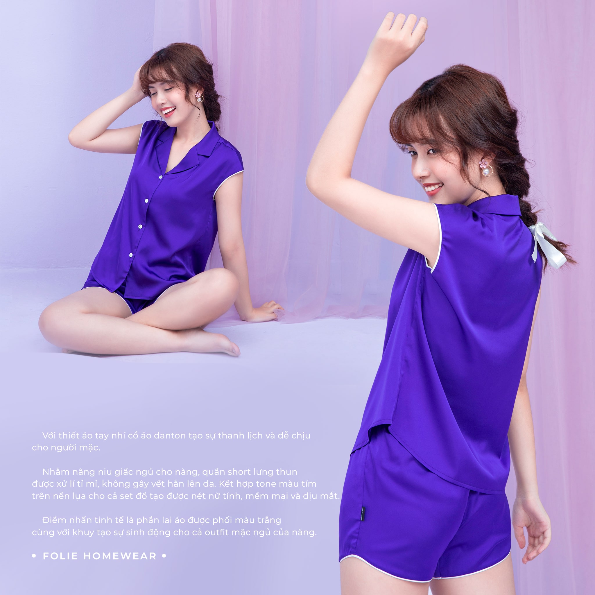- Set đồ bộ nữ FOLIE SET FB80.1 gồm: 1 áo tay nhí lụa crepe, 1 quần short lụa crepe