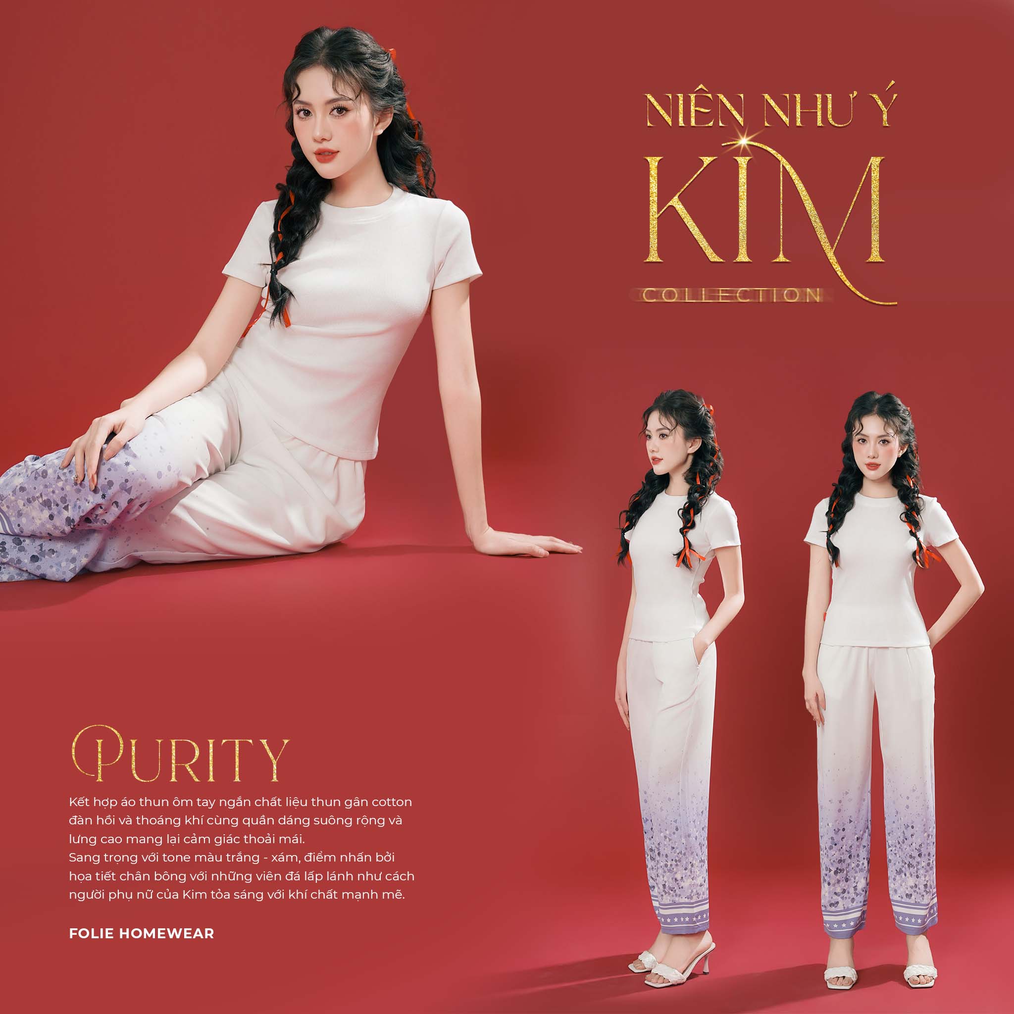 - Set đồ bộ nữ FOLIE FLA1Q3.13 gồm: 1 áo tay ngắn thun gân cotton, 1 quần dài lụa tằm ý