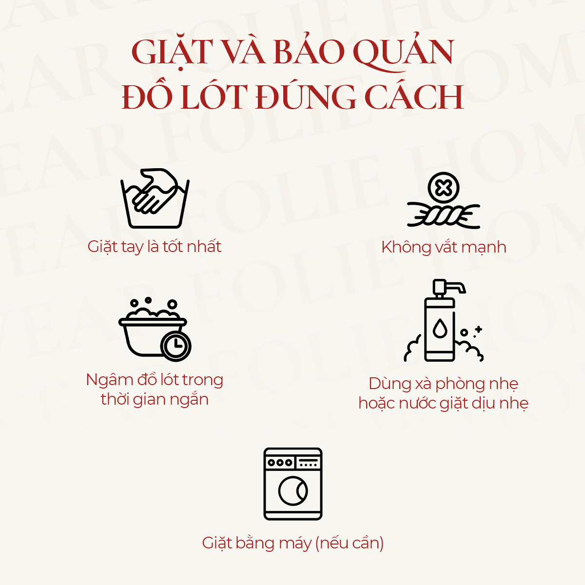 Giặt và bảo quản đồ lót đúng cách là vô cùng quan trọng để giữ được độ bền, vệ sinh và sức khỏe cho cơ thể. Dưới đây là một số hướng dẫn chi tiết: