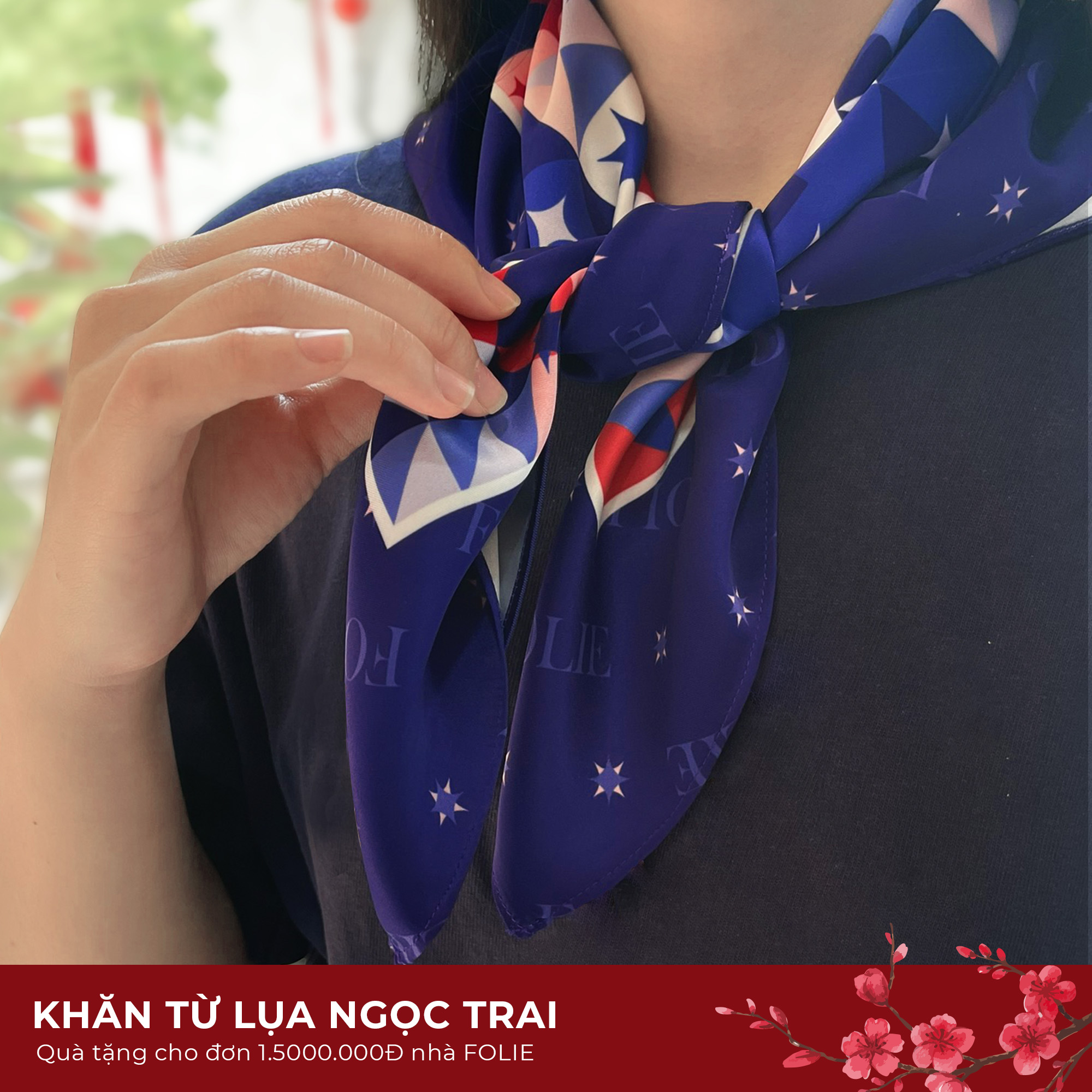 ** Bên cạnh đó "chiếc khăn lụa" cũng là một món phụ kiện thời trang truyền thống, gắn liền với người phụ nữ Việt thời xưa. Chiếc khăn lụa quàng cổ ban đầu chỉ mục đích giữ ấm cho cơ thể tuy nhiên nhờ sự đa năng cùng chất liệu lụa mềm mượt toát lên vẻ sang trọng, chiếc khăn lụa giờ đây đã trở thành phụ kiện thời trang được nhiều lứa tuổi ưa chuộng. Bên cạnh sự chăm chút cho mọi khoảnh khắc mặc nhà của nàng, năm mới này Folie còn dành riêng cho các Folie Lovers một sản phẩm "limited edition" ~ một chiếc khăn lụa tô điểm cho "Năm mới khởi sắc, nhuộm màu hạnh phúc".