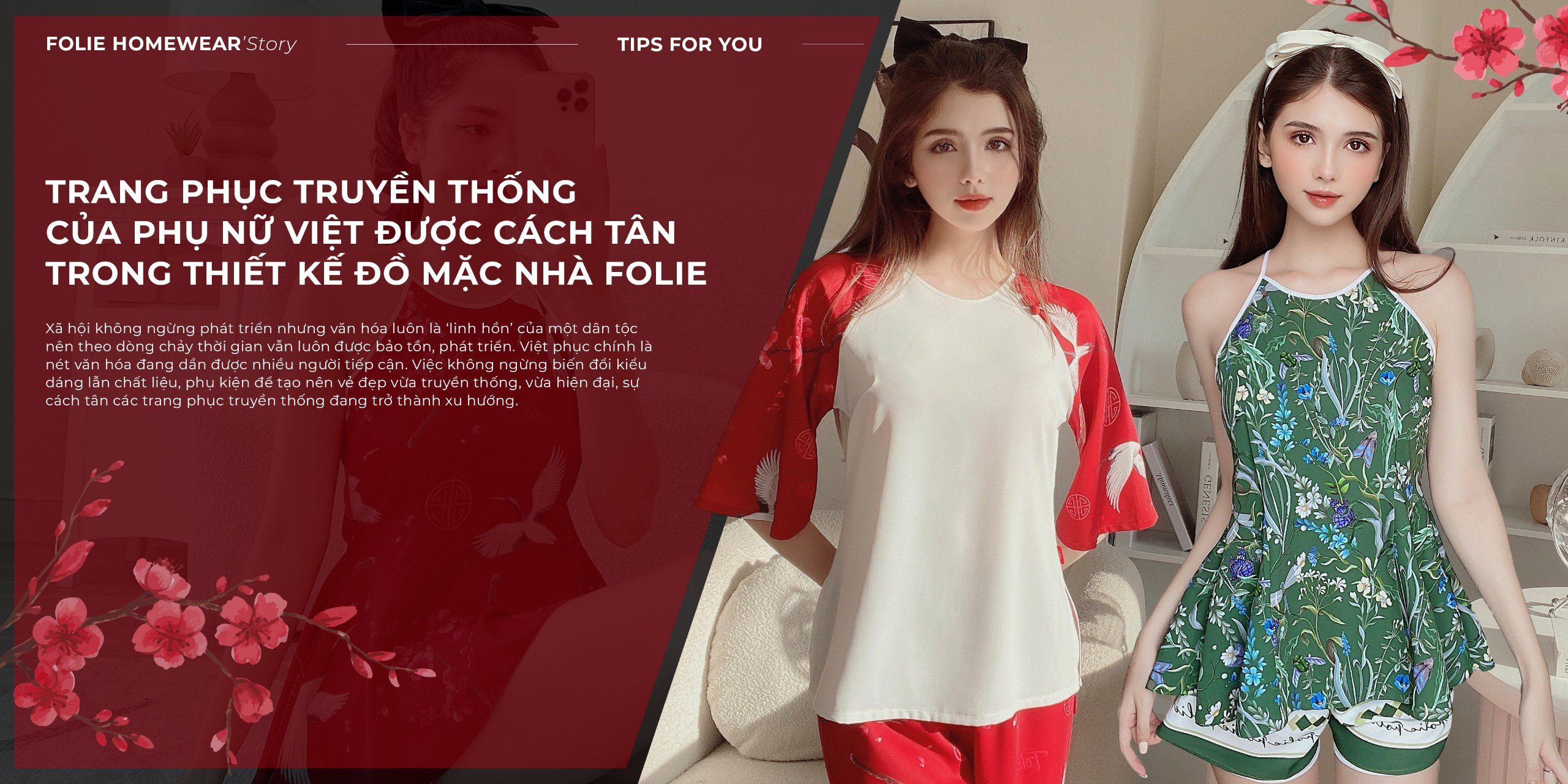 Xu hướng cách tân trang phục truyền thống vừa giúp bảo tồn được những giá trị nguyên bản kết hợp cùng nét đẹp hiện đại đem đến sự biến đổi mới mẻ, thú vị cho nhiều tầng lớp xã hội và thời đại khác nhau. Việc những trang phục truyền thống gắn liền với cuộc sống hàng ngày của phụ nữ Việt xưa được Folie cách tân lại đưa vào thiết kế mặc nhà của mình thể hiện được nét đẹp truyền thống, tôn lên nét đẹp vốn có của người phụ nữ. Những chi tiết được xử lí tỉ mỉ vừa giúp người mặc được thoải mái, tự tin và đặc biệt toát lên được cái hồn của trang phục truyền thống xưa.