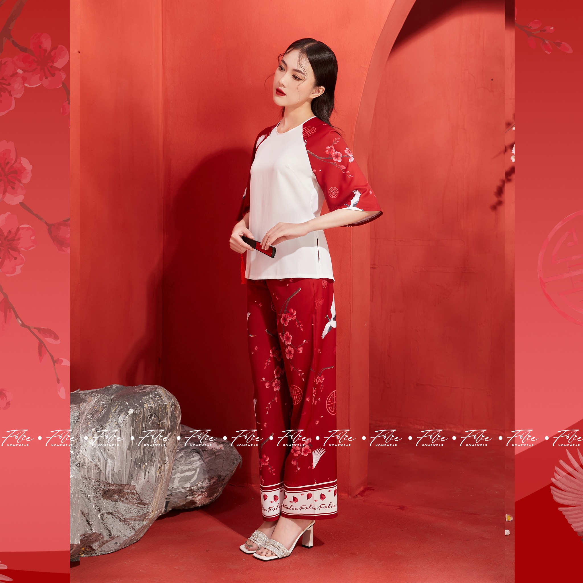 Là thời trang truyền thống một thời của những người phụ nữ Nam Bộ, những tà áo bà ba đi vào trong từng câu hát, từng vần thơ, sâu trong tiềm thức của nhiều người. Mặc áo bà ba cũng thoải mái, duyên dáng và tôn lên vóc người của phụ nữ. Bằng những chi tiết cách điệu nho nhỏ để phù hợp với thị hiếu người dùng, chiếc áo bà ba xuất hiện trong thiết kế trang phục mặc nhà của Folie mang đến cho nàng những nét đẹp truyền thống vốn có, tôn lên sự dịu dàng, lại mĩ miều vô cùng.